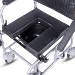 ویلچر حمامی استیل برند فوشان مدل FS697S طرح آلمان، قابلیت اتصال لگن به بخش نشیمن را هم دارد تا عزیزان بتوانند به راحتی در همان حالت نشسته کار خود را انجام دهند و نیاز به بلند شدن از روی ویلچر نداشته باشند. به دلیل کوچک بودن سایز چرخ ها امکان قرارگیری آن در دستشویی و بر روی توالت فرنگی هم وجود دارد. جنس بخش نشیمن هم آنتی باکتریال و از فوم نرم و راحت PU است.