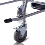 - پدالهای متحرک و قابل تنظیم: پدالهای زیرپایی ویلچر حمامی برند جی تی اس مدل 695 قابل تنظیم و متحرک هستند و به راحتی میتوانند تنظیم شوند تا حمل بیمار راحتتر شود. این ویژگی به همراه دستههای تاشو، به کاربر اجازه میدهد تا ویلچر را به راحتی جابجا کرده و فضای کمتری اشغال کند.
