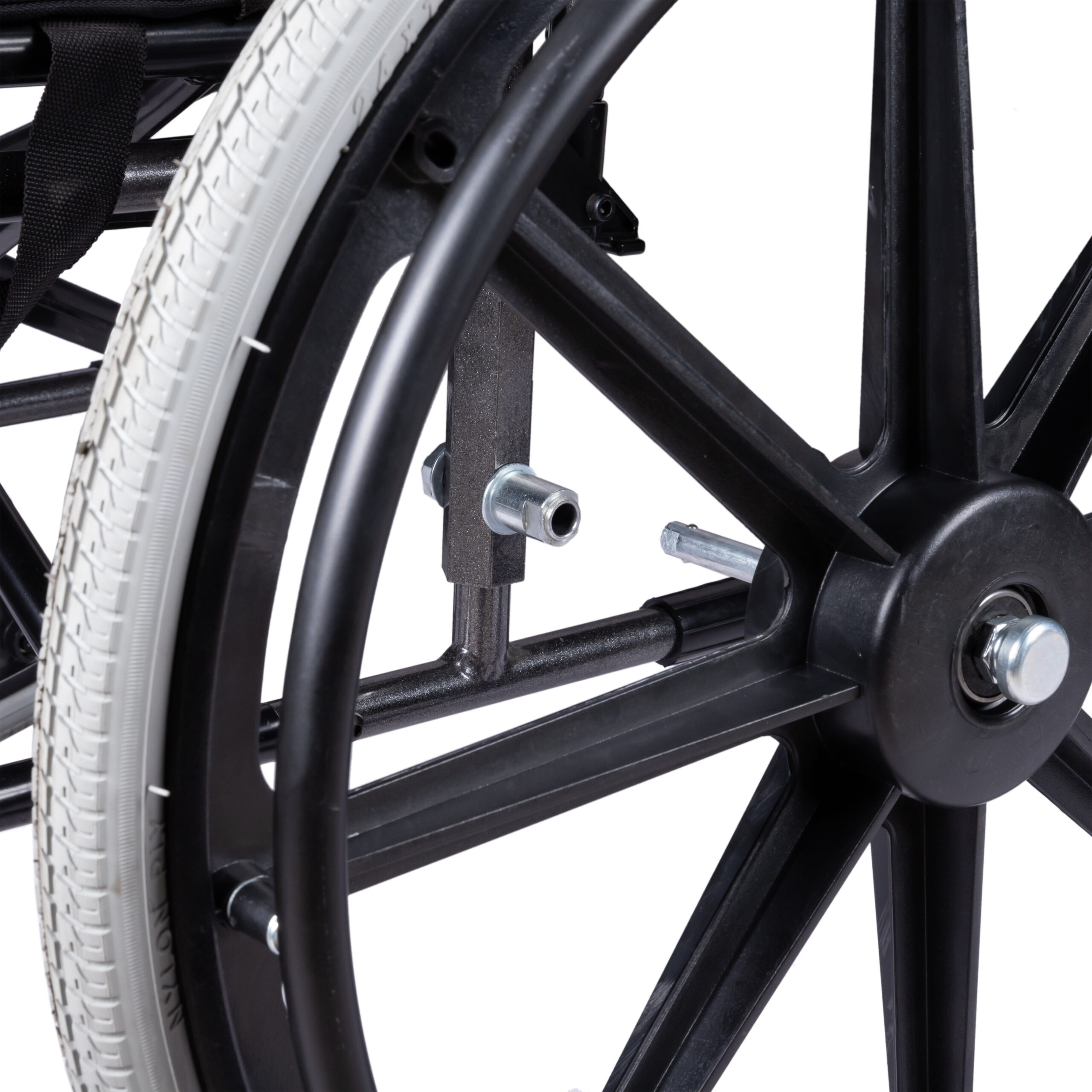 ویلچر مکانیکی فوق برای سهولت در حمل و جابجایی قابلیت تا شوندگی دارد. برای جابجایی بیمار با شرایط خاص طراحی زیر دستی و زیر پایی های متحرک این اجازه را به خود بیمار و یا همراه بیمار میدهند که بیمار خود را به راحتی بر روی ویلچر انتقال دهند. نا گفته نماند تعبیه ترمز دستی و ترمزهای عقب که بر روی دستگیره های عقب نصب شده همگی برای حفاظت از بیمار و کنترل خود ویلچر میباشد.
