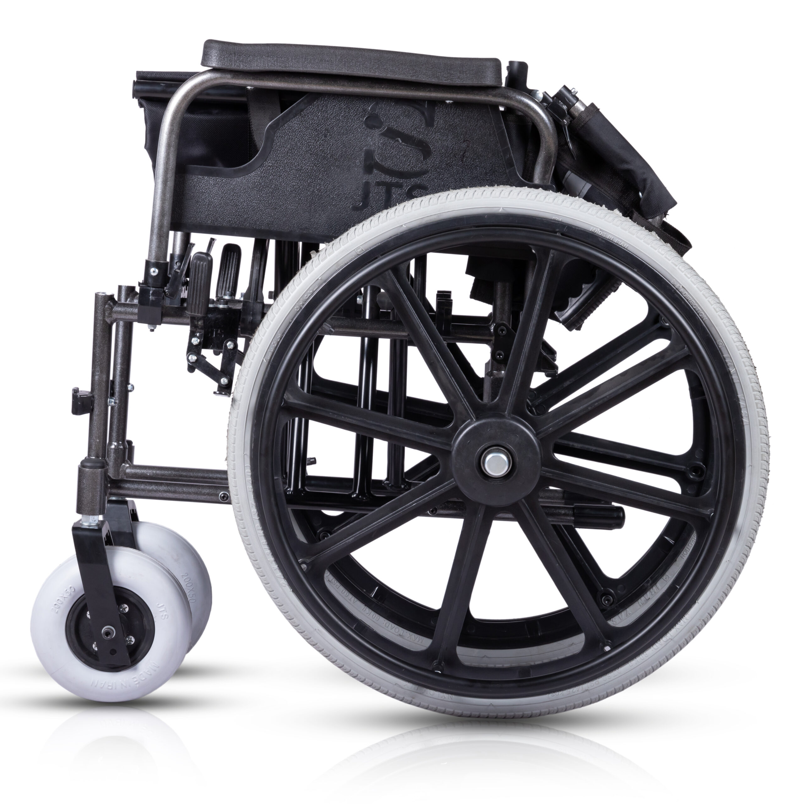 ویلچر آلومینیومی برند جی تی اس مدل 908LAQ دارای چرخ جلو طرح بادی و چرخ عقب بادی پینی است و تحمل وزن این ویلچر ۱40 کیلوگرم می باشد